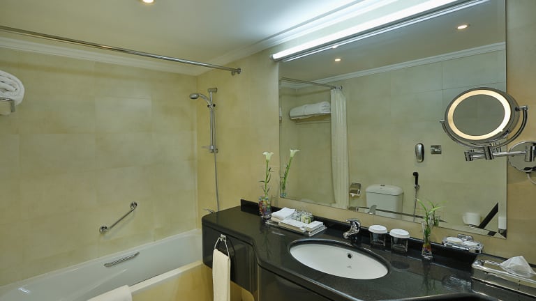 Das City Seasons Hotel Al Ain bietet eine angenehme Atmosphäre für Erwachsene, die eine ruhige Umgebung suchen. Es stehen 89 Zimmer und 16 Suiten zur Verfügung. Zur Ausstattung gehören ein Aufzug, ein Garten, ein TV-Raum sowie Einkaufsmöglichkeiten in Form eines Supermarktes und eines Souvenirshops. Zudem gibt es eine Garage oder Parkiermöglichkeiten für Gäste, die mit dem Auto anreisen. Ein professionelles Team an der Rezeption ist rund um die Uhr verfügbar und bietet Unterstützung. Rollstuhlgerechte Einrichtungen sind ebenfalls vorhanden, um die Bequemlichkeit für alle Gäste zu gewährleisten.