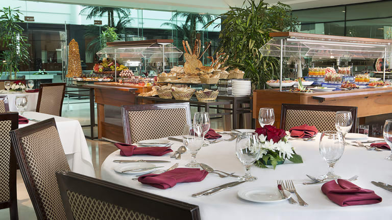 Die gastronomischen Einrichtungen umfassen ein Restaurant, ein Café sowie eine Bar. Das Hotel bietet Halbpension und Vollpension an. Ein kontinentales Buffetfrühstück wird täglich serviert. Zum Abendessen stehen eine Vielzahl an Gerichten à la carte bereit. Auf Wunsch werden auch Diätgerichte und Kindermenüs zubereitet. Die Pool-/Snackbar sorgt zudem für Erfrischungen während des Aufenthalts.