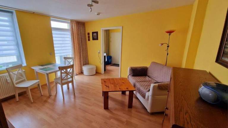 Die Ferienwohnung verfügt über ein Schlafzimmer und ist mit einem Wohnzimmer ausgestattet, welches einen Flachbild-TV mit Kabelkanälen beinhaltet. Die voll ausgestattete Küche bietet einen Kühlschrank und einen Geschirrspüler. Des Weiteren steht ein Badezimmer mit Dusche zur Verfügung. Handtücher und Bettwäsche werden bereitgestellt.