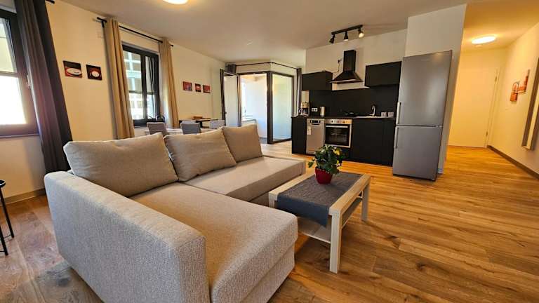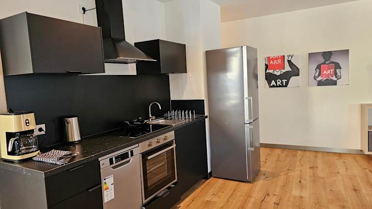 Jede Wohneinheit ist mit einer Küche ausgestattet, die einen Kühlschrank beinhaltet. Zudem verfügen die Appartements über einen Kabel Flachbild-TV, Bügelmöglichkeiten, einen Schreibtisch und einen Sitzbereich mit Schlafsofa. Ein voll ausgestattetes eigenes Badezimmer mit Dusche und Haartrockner ist ebenfalls vorhanden.