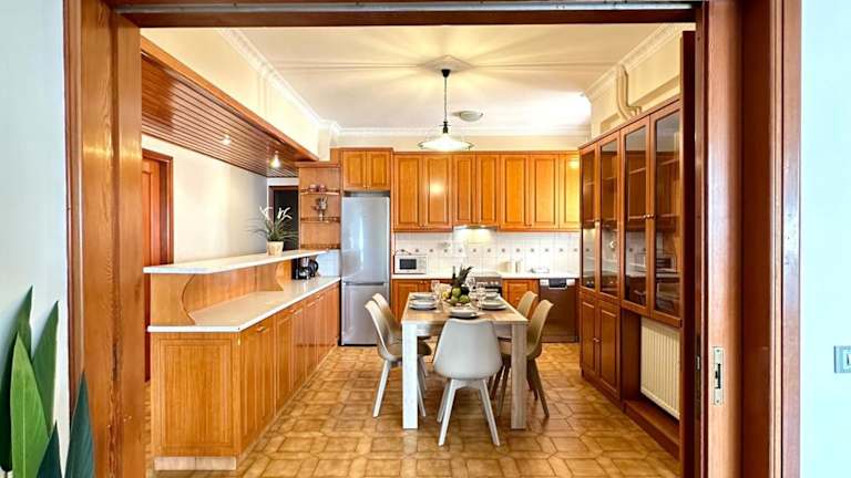 Die Ferienwohnung besteht aus 3 Schlafzimmern, einem Wohnzimmer und einer voll ausgestatteten Küche, die über einen Kühlschrank und eine Kaffeemaschine verfügt. Es gibt 2 Badezimmer, die mit einem Bidet und einer Dusche ausgestattet sind. Handtücher und Bettwäsche werden bereitgestellt. Es stehen Familienzimmer und Nichtraucherzimmer zur Verfügung, und die Unterkunft bietet auch ein Babybett auf Anfrage.