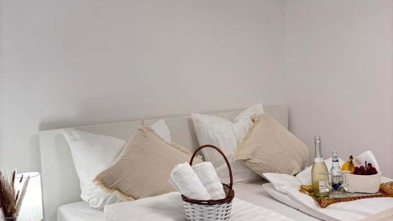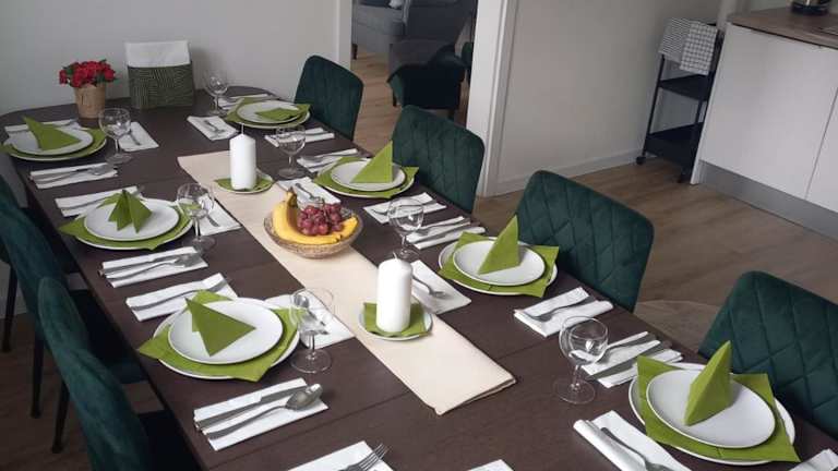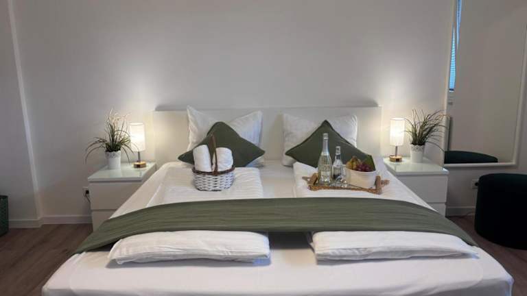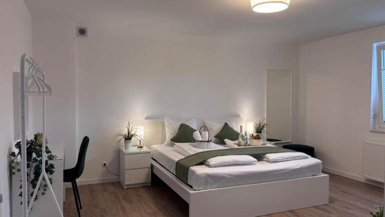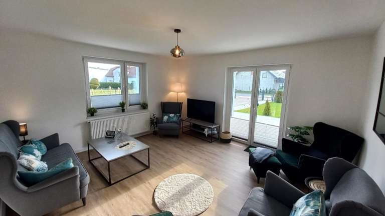Die Zimmer umfassen 4 Schlafzimmer und ein Wohnzimmer. Die gut ausgestattete Küche enthält einen Kühlschrank und einen Geschirrspüler. Das Badezimmer ist mit einer Dusche ausgestattet. Gegen Aufpreis können Handtücher und Bettwäsche zur Verfügung gestellt werden.
