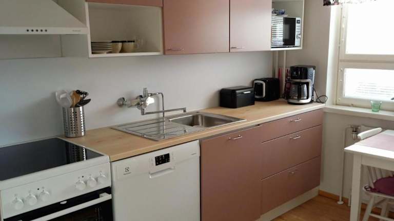 Die Ferienwohnung verfügt über 1 Schlafzimmer und eine gut ausgestattete Küche mit Kühlschrank, Geschirrspüler und Kaffeemaschine. Handtücher und Bettwäsche werden zur Verfügung gestellt.