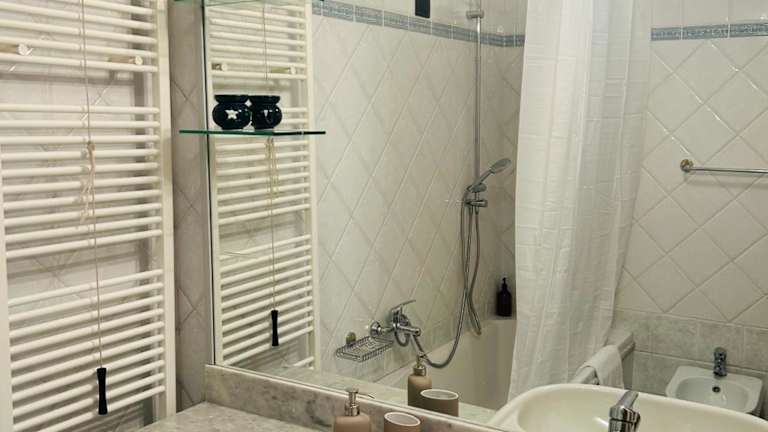 Die Ferienwohnung besteht aus 2 Schlafzimmern und einer Küche, die mit einem Kühlschrank sowie einem Geschirrspüler ausgestattet ist. Des Weiteren verfügt die Unterkunft über ein Badezimmer mit einem Bidet, kostenlosen Pflegeprodukten und einer Waschmaschine.