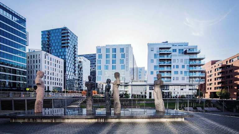 Das Hotel befindet sich im Zentrum Oslos, in der belebten Hochhausreihe Barcode. Die Entfernung zum Stadtzentrum beträgt ca. 0 m, und der Bahnhof liegt etwa 300 m entfernt. Zu den nahegelegenen Sehenswürdigkeiten gehören das Opernhaus Oslo und das neue Munch-Museum. Die Einkaufsstrasse Karl Johans gate ist in etwa 15 Gehminuten erreichbar.