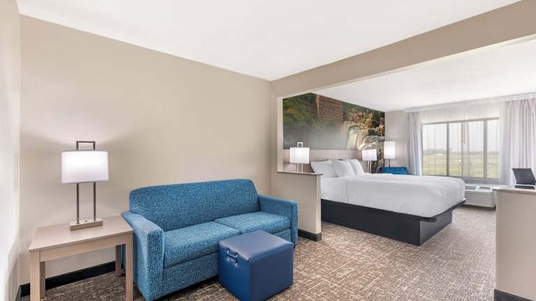 Das Clarion Pointe Sioux Falls Airport bietet eine behagliche Atmosphäre mit 93 Zimmern und modernen Annehmlichkeiten. Die Unterkunft ist mit einem Aufzug ausgestattet und bietet verschiedene Serviceleistungen wie Gepäckaufbewahrung, Safe und ein Getränkeautomat. Zudem steht WLAN im gesamten Hotel zur Verfügung. Die Einrichtung umfasst auch einen Kamin für zusätzliche Gemütlichkeit sowie einen TV-Raum. Die Parkiermöglichkeiten sind kostenlos sowohl in einer Garage als auch auf einem Parkplatz. Das Hotel ist allgemein behindertengerecht gestaltet und verfügt über rollstuhlgerechte Einrichtungen.