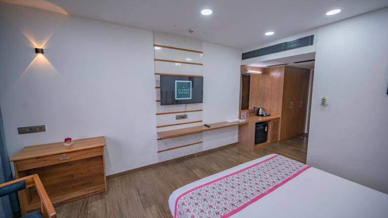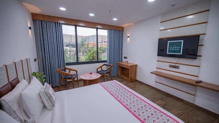 In der Unterkunft Clarks Safari Kheda, Ahmedabad sind die Zimmer mit einem Kleiderschrank, einem eigenen Badezimmer, kostenlosen Pflegeprodukten, einer Dusche, Klimaanlage und einem Flachbild-TV versehen.