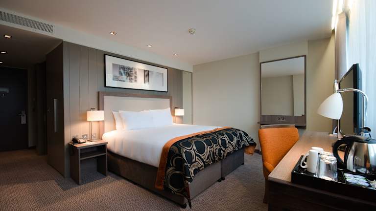 Die Zimmer sind modern eingerichtet und verfügen über Klimaanlage, Teppichböden, ein Doppelbett, ein Queensize- oder Kingsize-Bett sowie ein Sofabett. Zu jeder Unterkunft gehören ein Safe, eine Minibar, ein Kühlschrank, eine Tee-/Kaffeemaschine sowie ein Schreibtisch. Die Badezimmer sind mit einer Badewanne oder einer ebenerdigen Dusche ausgestattet und bieten Haartrockner und Kosmetikartikel. Ein TV-Gerät mit Satellitenempfang, ein Radio sowie kostenfreies WLAN sind ebenfalls vorhanden. Rollstuhlgerechte Zimmer sind verfügbar.
