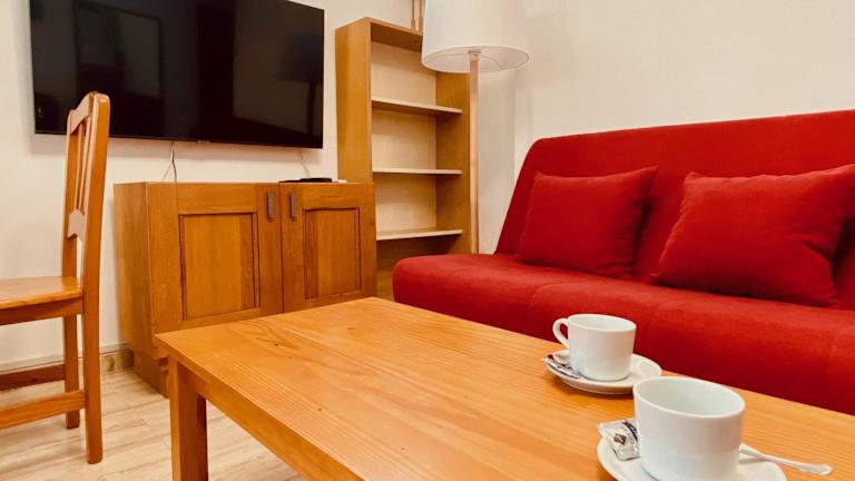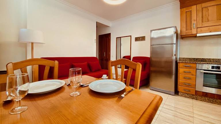 Die Ferienwohnung besteht aus einem Schlafzimmer, einem Wohnzimmer und einem Badezimmer mit Dusche und Haartrockner. Die Unterkunft ist mit einem TV ausgestattet und bietet somit auch Unterhaltung während des Aufenthalts. Es gibt eine Terrasse sowie einen Aussenpool für entspannende Momente im Freien.