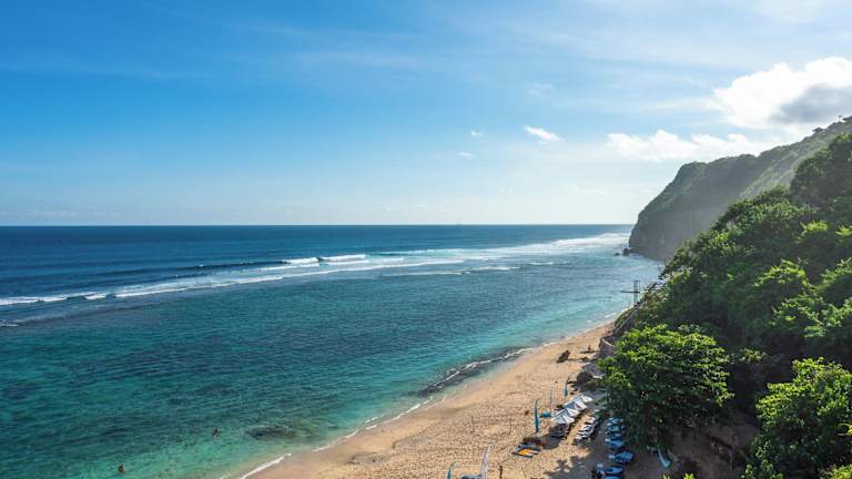 Die Villa befindet sich in Ungasan und ist nur eine kurze Fahrt von Sehenswürdigkeiten wie dem New Kuta Golfplatz und dem Pura Uluwatu entfernt. Der wunderschöne Strand Melasti ist ebenfalls in der Nähe. Die Lage der Villa bietet einen spektakulären Blick auf das Meer und die umliegende Landschaft.