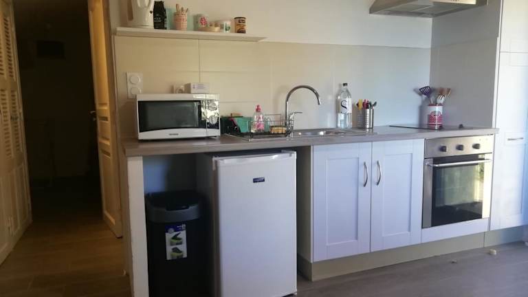 Die Unterkunft bietet eine voll ausgestattete Küchenzeile mit Kühlschrank und Kaffeemaschine. Sie verfügt über ein Schlafzimmer, ein Wohnzimmer und ein Badezimmer mit Dusche und Haartrockner. Handtücher und Bettwäsche werden zur Verfügung gestellt. Die Zimmer sind klimatisiert und schallisoliert.
