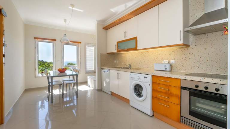 Die Ferienwohnung umfasst 3 Schlafzimmer und 2 Badezimmer. Zur Ausstattung gehören Bettwäsche, Handtücher, ein Flachbild-TV, ein Essbereich sowie eine voll ausgestattete Küche. Auch eine Terrasse mit Meerblick ist vorhanden, was den Aufenthalt besonders angenehm gestaltet.