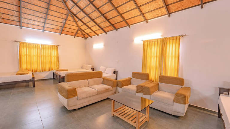 Das Hotel Clover Holiday Village in Somvarpet bietet einen entspannten Aufenthalt in malerischer Umgebung. Mit 10 Zimmern, die mit Kaminen ausgestattet sind, können Gäste eine gemütliche Atmosphäre genießen. Das hoteleigene Restaurant serviert köstliche Speisen und ein kontinentales Frühstück ist im Preis inbegriffen. Das Hotel bietet auch Annehmlichkeiten wie ein Spielzimmer, Unterstützung bei der Tourenplanung und einen Fahrradparkplatz.