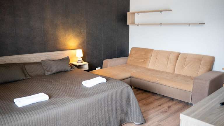 Die Apartments und Studios im Club MenDan Aparthotel sind geräumig und bieten Ihnen alles, was Sie für einen komfortablen Aufenthalt benötigen. Die voll ausgestattete Küche ermöglicht es Ihnen, Ihre eigenen Mahlzeiten zuzubereiten, und das private Badezimmer ist mit einer Dusche ausgestattet. Ein gemütlicher Sitzbereich mit Schlafsofa lädt zum Entspannen ein. Alle Unterkünfte sind bequem mit dem Aufzug erreichbar, um Ihren Komfort zu gewährleisten.