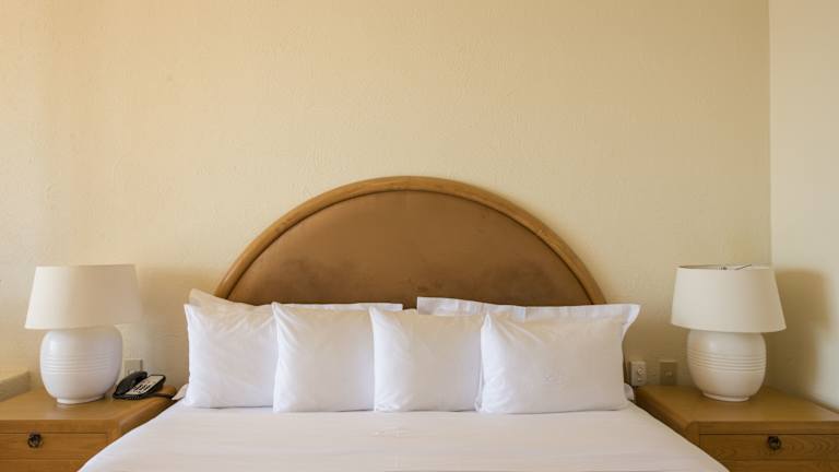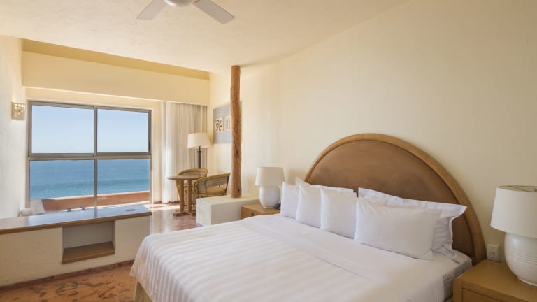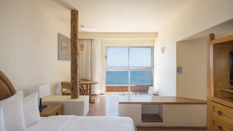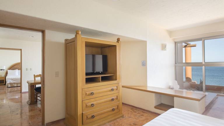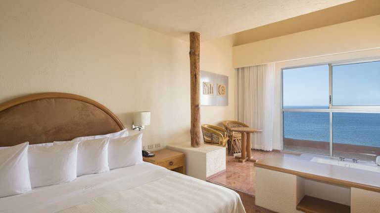 Die Zimmer sind ausgestattet mit Klimaanlage, Heizung, Ventilator, Kingsizebett und einem Sofabett. Von Balkon oder Terrasse aus können die Gäste den Meerblick geniessen. Die Ausstattung umfasst ebenfalls einen Safe, eine Minibar, eine Tee-/Kaffeemaschine sowie ein Bügelset. Zur Unterhaltung stehen ein Telefon mit Direktwahl, ein TV-Gerät, ein Radio und Wifi zur Verfügung. Die Badezimmer sind mit Dusche und Badewanne, Haartrockner sowie Kosmetikartikeln ausgestattet.