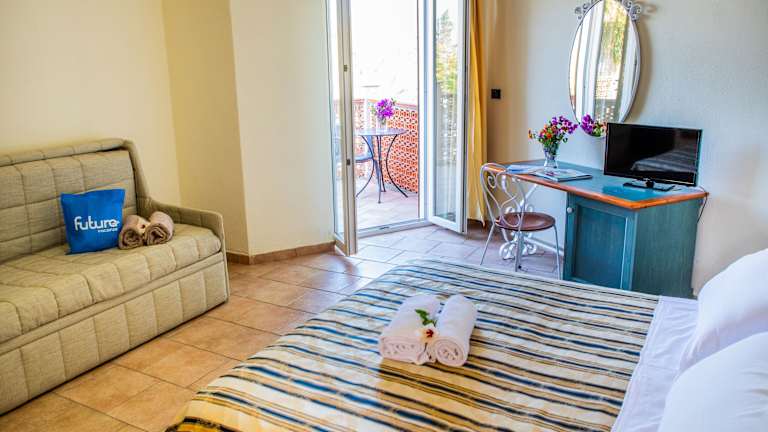 Die Zimmer im Hotel Futura Club Itaca Nausicaa sind komfortabel eingerichtet und verfügen über eine Klimaanlage, einen Safe und einen Fernseher. Das Badezimmer ist mit einer Dusche oder einer Badewanne ausgestattet und ein Haartrockner steht Ihnen zur Verfügung. Ein Balkon oder eine Terrasse bietet Ihnen die Möglichkeit, die frische Luft zu genießen.