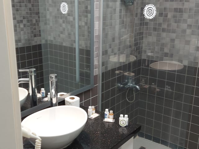 In den Zimmern gibt es eine individuell steuerbare Klimaanlage. Gäste können den Meerblick von einem Balkon oder einer Terrasse geniessen. Die Zimmer sind mit einem Doppelbett oder einem Sofabett ausgestattet und verfügen über einen Safe sowie eine Minibar. Ein Minikühlschrank, ein Direktwahltelefon, ein TV-Gerät mit Satelliten- oder Kabelempfang und kostenfreies WiFi gehören ebenfalls zur Ausstattung. Die Badezimmer sind mit Dusche und Badewanne ausgestattet und beinhalten einen Haartrockner sowie ein Telefon.