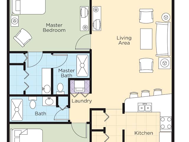 Die Suiten sind mit einem Wohnzimmer, einer Küche und einem Badezimmer ausgestattet. Zur Ausstattung gehören auch eine Klimaanlage, ein Balkon oder eine Terrasse, eine Kochnische mit Kühlschrank, Herd, Mikrowelle und Backofen. Zudem verfügen die Zimmer über einen Safe, einen TV mit Satellitenempfang, einen CD-Player und kostenfreies WiFi. Die Badezimmer sind mit Dusche und Badewanne, sowie Kosmetikartikeln ausgestattet. Es sind rollstuhlgerechte Zimmer und Familienzimmer buchbar.