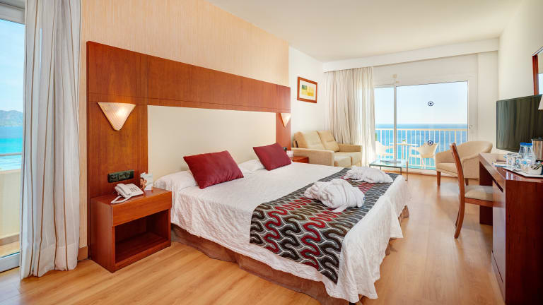 Die 230 elegant und komfortabel eingerichteten Doppelzimmer und Junior Suiten bieten entweder Meerblick oder seitlichen Meerblick. Doppelzimmer: Die geräumigen ca. 28 m2 großen Zimmer sind gepflegt ausgestattet mit zwei bequemen Einzelbetten, Safe (gegen Gebühr), Minibar (gegen Gebühr), Haartrockner, Dusche oder Badewanne, Balkon. Juniorsuite: Die geräumigen Juniorsuiten (35 m²) mit Balkon und seitlichem Meerblick sind ausgestattet mit Minibar (gegen Gebühr), Kaffee-/Teebereiter, Klimaanlage, Mietsafe, SAT-TV, Musikkanal, Wlan (inklusive), Telefon, zusätzlichem Schlafsofa und Bademänteln. Badezimmer mit Dusche, WC, Föhn.