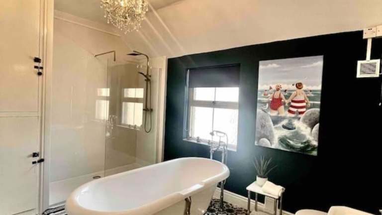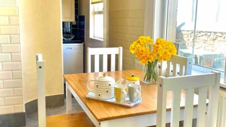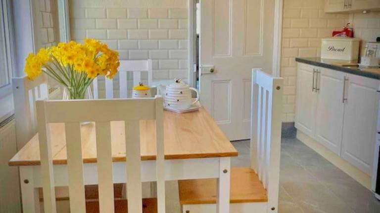 Coastal walks, Log burner & hot tub bietet Übernachtungsmöglichkeiten mit Zugang zu einem Whirlpool und einem ruhigen Garten. Die Bequemlichkeit einer kostenlosen Privatparkiermöglichkeit ist gegeben.