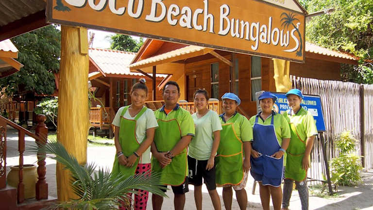 Coco Beach Bungalows bietet Übernachtungsmöglichkeiten mit Blick auf den Strand. Die Unterkunft verfügt über einen Garten, einen eigenen Strandbereich und eine Terrasse. Zu den weiteren Einrichtungen zählen ein Tourenschalter, eine Gepäckaufbewahrung und kostenloses WLAN.