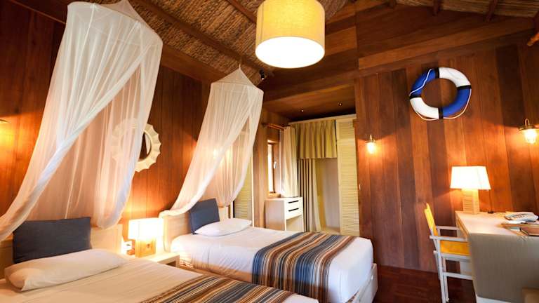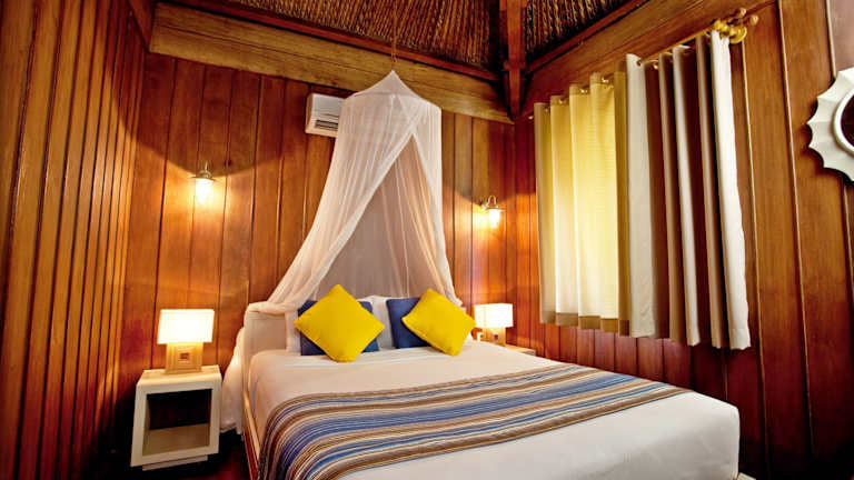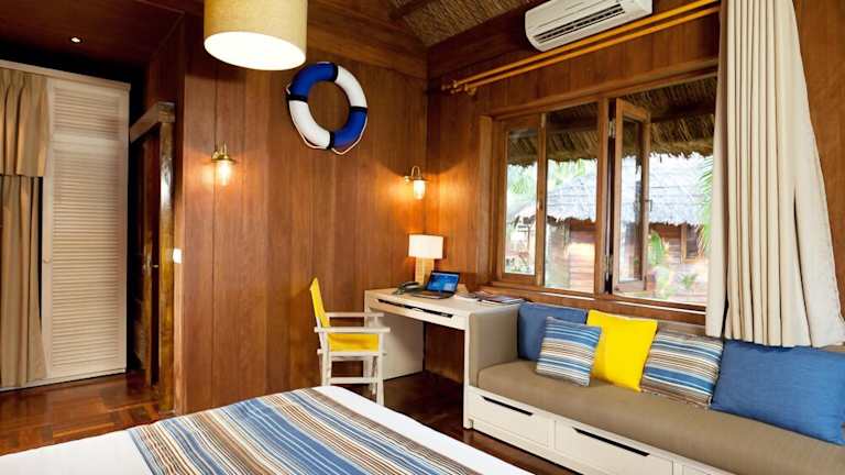 Die Zimmer des Coco Beach Resort bieten ein angenehmes Raumklima dank Klimaanlage. Die meisten Zimmer verfügen über eine Terrasse. Ein Doppelbett sorgt für geruhsamen Schlaf, und Zustellbetten sind auf Anfrage erhältlich. Zur Ausstattung gehören ein Safe, eine Minibar, ein Kühlschrank, eine Tee-/Kaffeemaschine sowie ein Schreibtisch. Des Weiteren sind ein Telefon, ein TV-Gerät und kostenfreies Wifi vorhanden. Im Badezimmer sind sowohl eine Dusche als auch eine Whirlwanne vorhanden, ausgestattet mit einem Haartrockner und Kosmetikartikeln.
