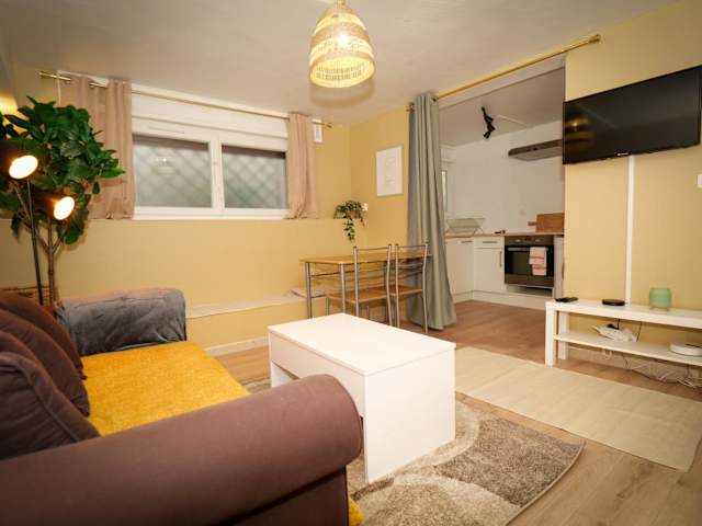 Die Unterkunft bietet ein Schlafzimmer sowie einen Flachbild-TV und eine Küche, die ideal für Selbstversorger ist. Alle Bereiche sind Nichtraucherzonen, wodurch eine angenehme Atmosphäre gewährleistet wird.