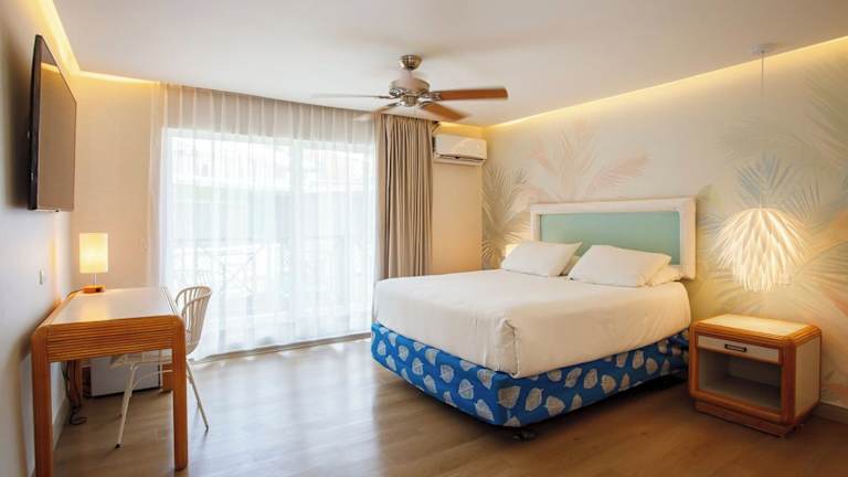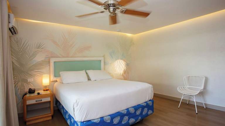 Die Zimmer sind mit Klimaanlage, einem Ventilator, Kabel-TV und einer Minibar ausgestattet. Die meisten Zimmer bieten einen Balkon oder eine private Terrasse mit Blick auf das Meer. Zudem gibt es ein Badezimmer mit Dusche, Haartrockner und Bademänteln. Die Einrichtung umfasst auch einen Safe, Kühlschrank und kostenloses Wifi.