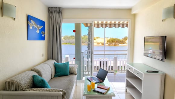 - Die Appartements verfügen über ein Schlafzimmer mit zwei Einzelbetten, ein Wohnzimmer mit Schlafcouch und Sessel, TV, Klimaanlage und Wifi kostenlos. - Die kleine Küche ist mit allem, was für 3 Personen nötig ist, ausgestattet: Ceranherd, Kühlschrank, Mikrowelle, Kaffeemaschine und Wasserkocher. - Die Reinigung wird fünfmal wöchentlich durchgeführt, Handtücher werden zweimal wöchentlich gewechselt, Laken einmal wöchentlich. - Alle Appartements verfügen über eine geräumige perfekt möblierte Terrasse, ideal um Ihr Frühstück bei Sonnenaufgang oder ein Glas Sekt am Abend dort zu geniessen.