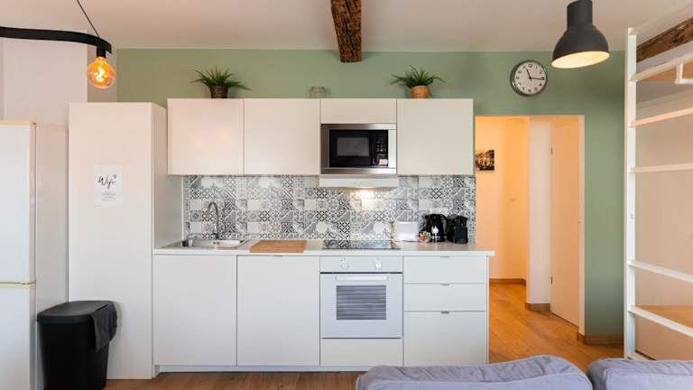 Das Apartment verfügt über eine voll ausgestattete Küche, so dass Sie Ihre eigenen Mahlzeiten zubereiten können. Alternativ können Sie auch die vielen Restaurants und Cafés in der Umgebung erkunden und die lokale Küche genießen.