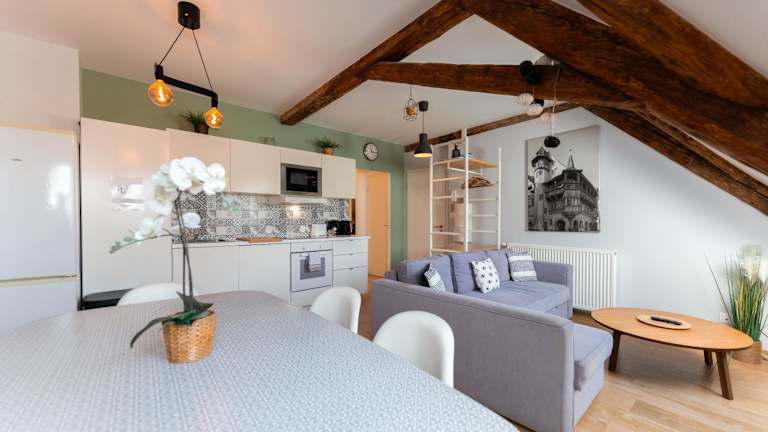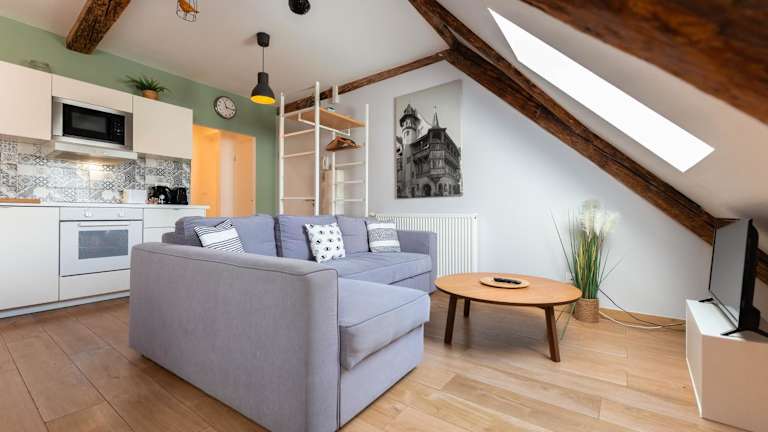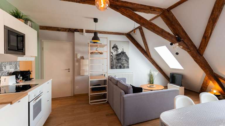 Das Apartment im Colmar Historic Center - BELLE ALSACE 5 - 4 étoiles bietet Platz für bis zu 4 Personen und ist mit 2 Schlafzimmern, einem gemütlichen Wohnzimmer und einer voll ausgestatteten Küche ausgestattet. Die moderne Einrichtung und die Stadtblick sorgen für eine angenehme Atmosphäre. Handtücher und Bettwäsche werden gestellt, so dass Sie sich wie zu Hause fühlen können.