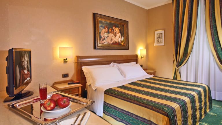 Die klimatisierten Zimmer sind mit einem Flachbild-Sat-TV, einer Minibar und einem eigenen Bad mit kostenfreien Pflegeprodukten ausgestattet. Einige Suiten verfügen über einen Balkon, andere blicken auf die Piazza del Gesù. Allergikerfreundliche Zimmer sind vorhanden. Die Zimmer sind schallisoliert und es gibt Nichtraucherzimmer.