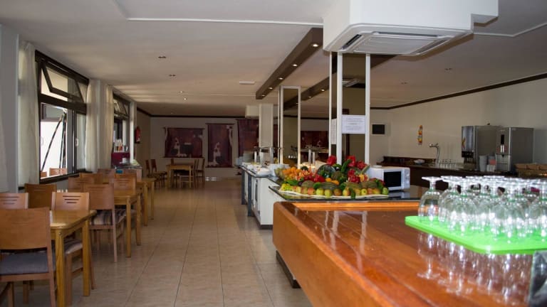 Die gastronomischen Einrichtungen umfassen ein Restaurant mit Kinderhochstühlen, einen Speiseraum, einen Frühstückssaal und eine Bar. Die Verpflegung erfolgt in Form von Halbpension und All-Inclusive, mit Angeboten für Frühstück, Mittagessen und Abendessen sowie Snacks und eine Auswahl an alkoholischen und alkoholfreien Getränken.