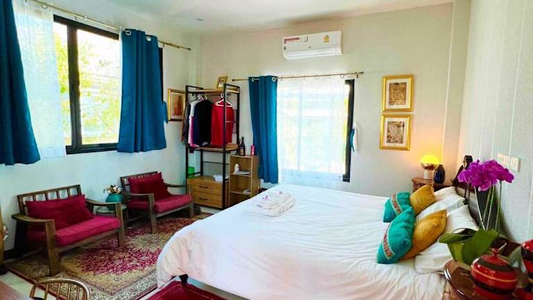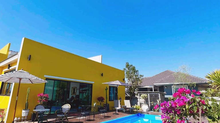 Die Colorful Pool Villa bietet eine heimelige Atmosphäre mit einem Aussenpool, einem Garten und einer Terrasse. Diese private Unterkunft wird von einem Gastgeber betrieben und bietet eine ruhige Umgebung für einen entspannten Aufenthalt.