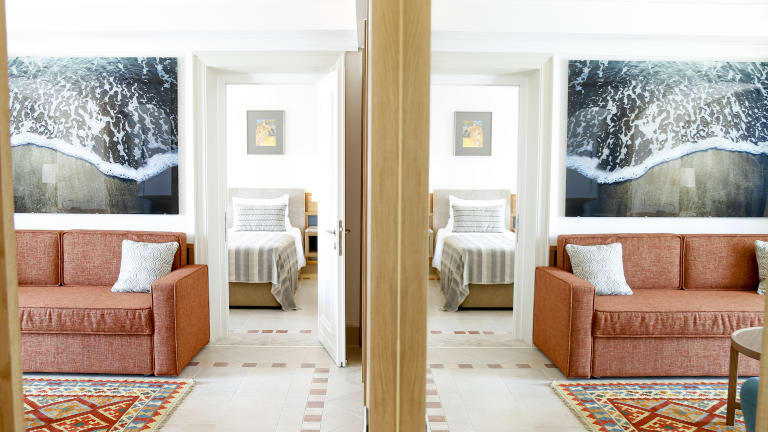 Die Hotelmitarbeiter heißen die Gäste in den hochwertig und gemütlich eingerichteten 169 Suiten (Junior Suiten, Executive Suiten, Suiten mit einem oder zwei getrennten Schlafzimmern, jeweils mit Garten- oder Meerblick) herzlich willkommen. Im eigenen Badezimmer finden die Resortgäste Badewanne und Dusche, Kosmetikspiegel, Bademantel, Haartrockner, Toilettenartikel und Hausschuhe vor. Ein komfortabler Sitzbereich gehört auch dazu. Eine Minibar, ein Safe und ein Schreibtisch ergänzen die Raumausstattung. Zum Zimmerinventar zählen ein Kühlschrank, sowie eine Nespresso Kaffeemaschine. Zudem ergänzen ein Telefon, ein Radio sowie ein Fernseher das Inventar. Bei Ihrer Anreise erhalten die Feriengäste eine Flasche Wasser. Auf Wunsch sind auch behindertenfreundliche Zimmer erhältlich.