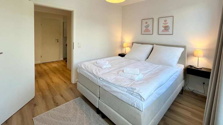 Die Ferienwohnung besteht aus 2 Schlafzimmern, einem Wohnzimmer und einer voll ausgestatteten Küche, die über einen Kühlschrank und eine Kaffeemaschine verfügt. Zudem gibt es ein Badezimmer mit einer Dusche und kostenlosen Pflegeprodukten. Handtücher und Bettwäsche werden bereitgestellt.