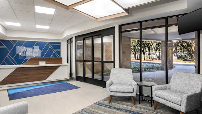 Das Hilton Head Island Holiday Inn Express ist ein Resort-Stil Hotel, das nur 7 Gehminuten vom Strand Coligny entfernt liegt und von 3 Lagunen umgeben ist. Genießen Sie den Außenpool und das kostenlose Frühstücksbuffet mit warmen Speisen. Die Zimmer sind mit kostenfreiem WLAN, einem Flachbild-Kabel-TV und einer Kaffeemaschine ausgestattet. Nutzen Sie den kostenlosen Shuttleservice zum Strand und zum Frühstücksbereich. Das Hotel bietet auch einen Fahrradverleih und ein Fitnesscenter.