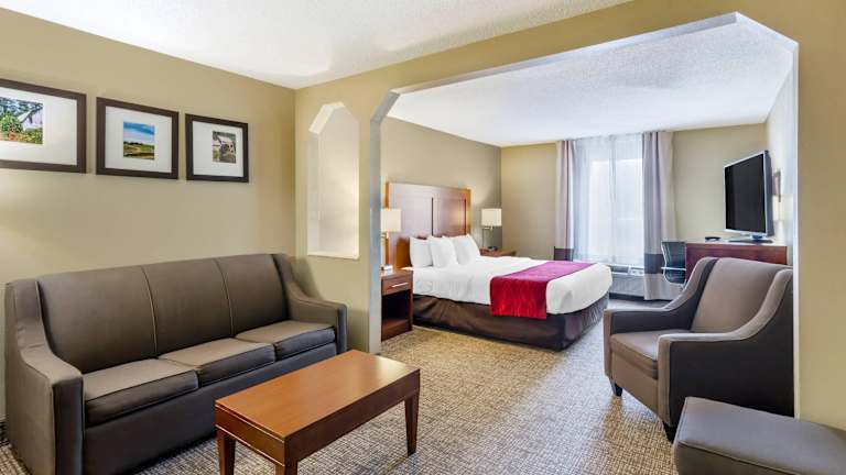 Das Comfort Inn & Suites Hotel liegt an der Interstate 81, weniger als 3,2 km vom New River Valley Medical Center entfernt. Nahegelegene Sehenswürdigkeiten sind das Virginia Polytechnic Institute und die State University (Virginia Tech), das New River Community College sowie die Radford University. Der Flughafen New River Valley ist 21 km entfernt. In der Umgebung finden sich das President Andrew Johnson Museum and Library, das Montgomery Museum und das Lewis Miller Regional Art Center sowie das Virginia Museum of Natural History und die Mehrzweckhalle Cassell Coliseum. Auch das Einkaufszentrum New River Valley Mall sowie zahlreiche Restaurants und Cocktailbars sind bequem erreichbar.