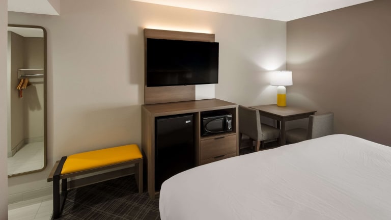 Die Zimmer sind klimatisiert und mit Kabel-TV ausgestattet. Ein eigenes Badezimmer mit Dusche und Haartrockner ist vorhanden. Zu den weiteren Annehmlichkeiten gehören ein Schreibtisch, ein Bügeleisen/-brett und eine Tee-/Kaffeemaschine. WLAN nutzen die Gäste kostenfrei. Rollstuhlgerechte Zimmer mit barrierefreiem Badezimmer sind ebenfalls buchbar.
