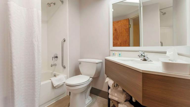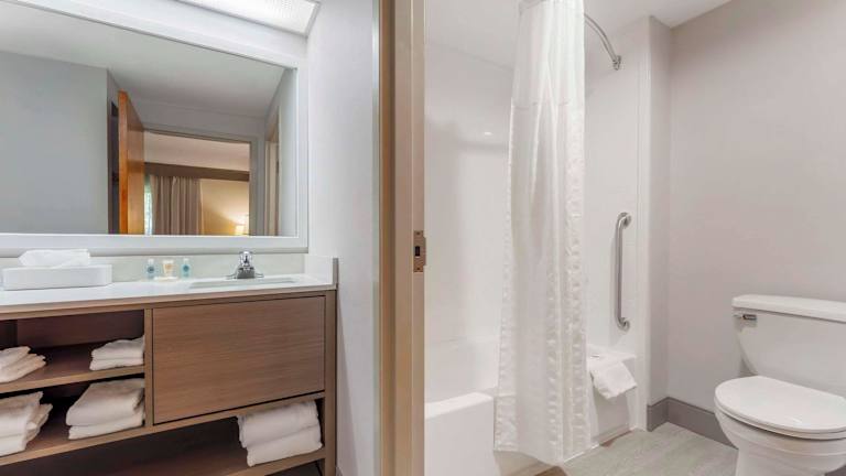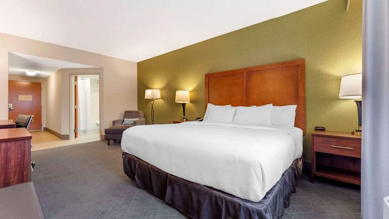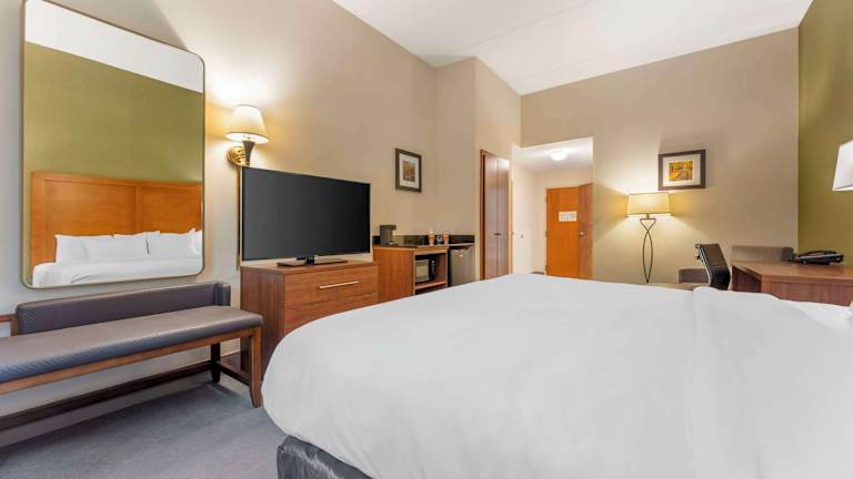 Die Gästezimmer sind mit modernen Annehmlichkeiten ausgestattet, darunter Mikrowellen, Kühlschränke, Kaffeeautomaten und Flachbildfernseher. Einige Zimmer bieten zusätzlich Whirlpool-Badewannen. Es stehen Nichtraucherzimmer zur Verfügung, und die Schallisolierung sorgt für Ruhe.