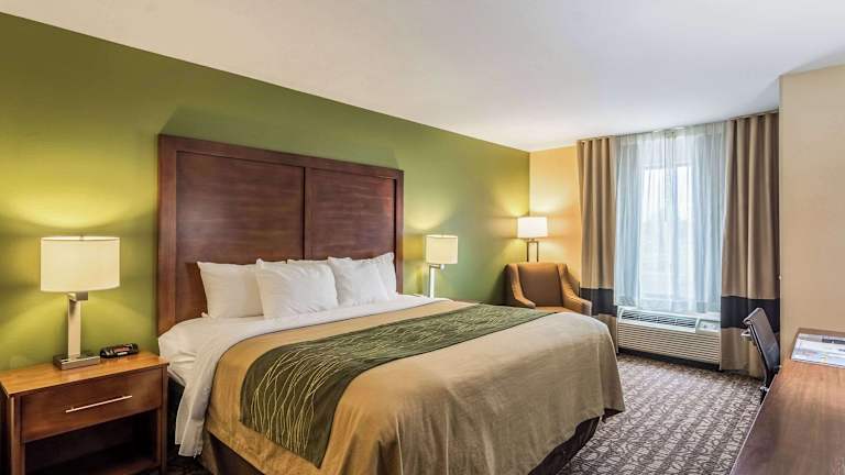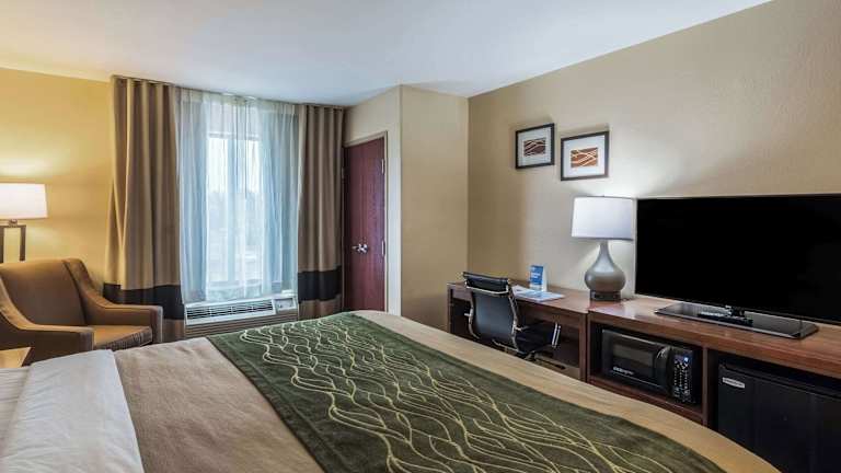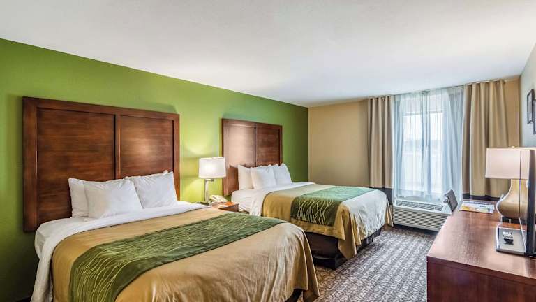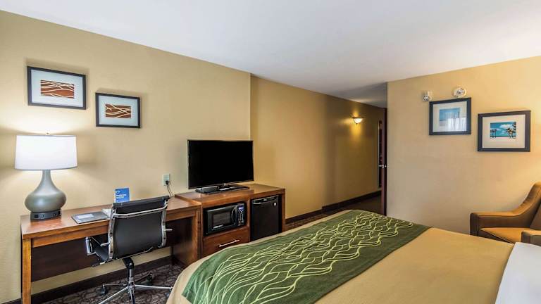 Das Comfort Inn & Suites verfügt über 69 Zimmer und bietet eine bequeme Unterkunft mit einem Lift und einer Rezeption. Zur Ausstattung gehören ein Safe, ein Getränkeautomat sowie ein Indoor- und Outdoor-Pool. Zudem stehen den Gästen Wäscheservices, ein Business-Center und behindertengerechte Einrichtungen zur Verfügung.
