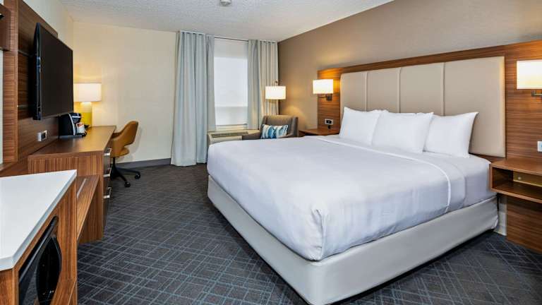 Das Comfort Inn & Suites bietet insgesamt 98 Zimmer und umfasst Annehmlichkeiten wie einen Zimmerservice, Wäscheservice, einen Konferenzraum, ein Businesscenter und einen Fahrstuhl. Das Haus verfügt über einen Innen- und einen Aussenpool sowie einen Whirlpool im Wellnessbereich. Rollstuhlgerechte Einrichtungen sind ebenfalls vorhanden.