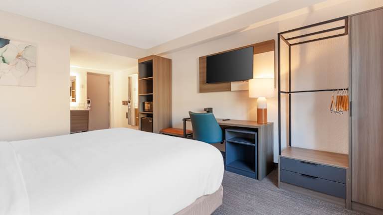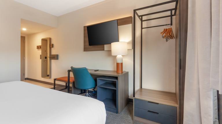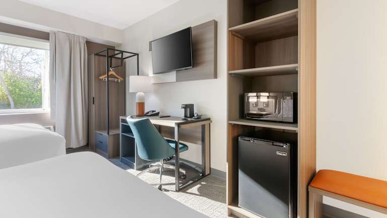 Die Zimmer sind mit einem Doppelbett, Kühlschrank und einer Tee-/Kaffeemaschine ausgestattet. Ein Bügelset ist verfügbar, ebenso wie ein Fernseher, WiFi und ein Badezimmer mit Dusche und Haartrockner. Rollstuhlgerechte Zimmer mit barrierefreiem Badezimmer sind ebenfalls buchbar.
