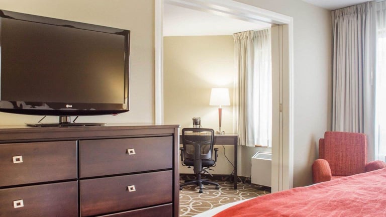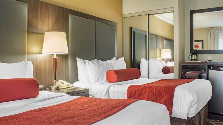 Die Zimmer im Comfort Inn sind klimatisiert und verfügen über ein Doppelbett, ein Queensize-Bett oder ein Kingsize-Bett. Zustellbetten können angefragt werden. Zusätzlich sind eine Minibar, ein Schreibtisch sowie ein Kühlschrank und eine Mikrowelle vorhanden. Für die Bequemlichkeit der Gäste stehen auch Kaffee- und Teezubereiter sowie ein Bügelset bereit. Die Zimmer sind mit einem TV-Gerät ausgestattet, auf dem Satelliten- und Kabelprogramme empfangen werden können. Im Badezimmer sorgt eine Dusche für Erfrischung und es sind Kosmetikartikel sowie eine Auswahl an Handtüchern vorhanden. Rollstuhlgerechte Zimmer mit barrierefreien Badezimmern sind ebenfalls buchbar. Zudem sind Nichtraucherzimmer verfügbar.