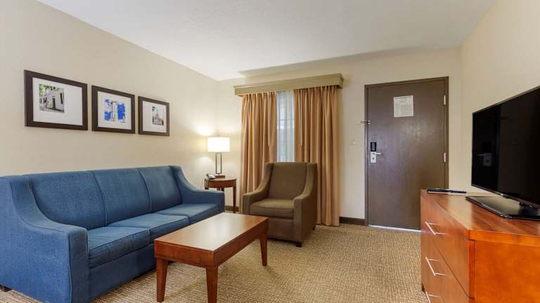 Das Comfort Suites Fredericksburg South ist ein einladendes Suitehotel mit 103 Komfortzimmern, das 1990 eröffnet wurde. Die Unterkunft bietet eine Vielzahl von Annehmlichkeiten, darunter einen Outdoor- und einen Indoor-Pool sowie ein 24-Stunden-Fitnessstudio. Ein Shuttlebus, Wäschereiservice und ein Business-Center sind ebenfalls vorhanden.