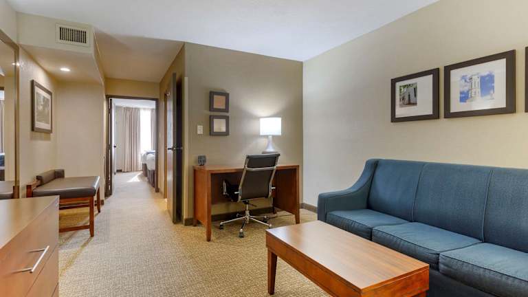 Das Hotel Comfort Suites Fredericksburg South liegt in Fredericksburg, näher an der Innenstadt, nur 9,6 km entfernt. Die Umgebung bietet Einkaufsmöglichkeiten in einem nahegelegenen Supermarkt sowie diverse Geschäfte, die zu einem Bummel einladen. Gäste können bequem die Sehenswürdigkeiten der Stadt, wie das Fredericksburg Battlefield oder das Civil War Life Soldier Museum, besuchen.