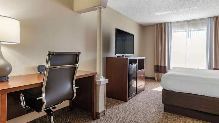Die Zimmer im Comfort Suites Grandville sind klimatisiert und bieten ein behagliches Raumklima. Jedes Zimmer ist mit einem Schreibtisch, Kühlschrank, Mikrowelle, Tee-/Kaffeemaschine sowie einem Bügelset ausgestattet. Ein TV-Gerät und gratis Wifi gehören ebenfalls zur Ausstattung. Die Badezimmer verfügen über eine Dusche sowie eine Whirlwanne, und es sind rollstuhlgerechte Zimmer mit barrierefreien Badezimmern verfügbar.