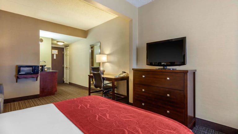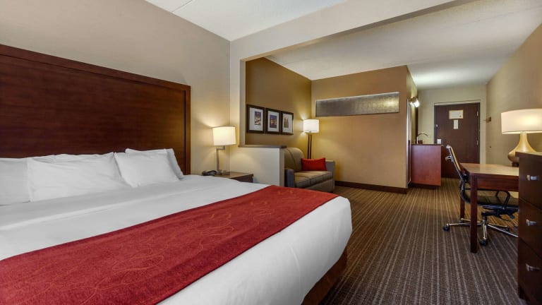 Das Comfort Suites Green Bay West bietet 115 Zimmer und die Bequemlichkeit eines Aufzugs. Die Unterkunft zeichnet sich durch eine freundliche Atmosphäre aus, mit einem Kamin und einem TV-Raum. Zusätzliche Einrichtungen umfassen einen Supermarkt, einen Wäscheservice, sowie eine Gepäckaufbewahrung. Es stehen sowohl behindertengerechte als auch rollstuhlgerechte Einrichtungen zur Verfügung. Ein hervorragend ausgestattetes Business-Center unterstützt Gäste bei geschäftlichen Anliegen.