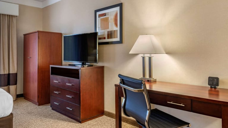 Das Comfort Suites Linn County Fairground and Expo ist eine moderne Unterkunft mit insgesamt 86 Zimmern, einem Aufzug und einer Rezeption. Die Gäste haben die Möglichkeit, den Innen- und Aussenpool sowie einen Whirlpool im Wellnessbereich zu nutzen. Das Hotel bietet zudem rollstuhlgerechte Einrichtungen sowie einen Minimarkt für den täglichen Bedarf. WLAN steht in der Unterkunft kostenfrei zur Verfügung, ebenso wie ein Zimmerservice, Wäscheservice und ein Konferenzraum. Für Gäste, die mit dem Fahrzeug anreisen, bestehen Parkiermöglichkeiten (je nach Verfügbarkeit) ohne Gebühr.