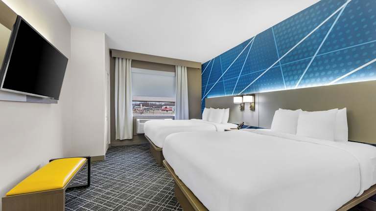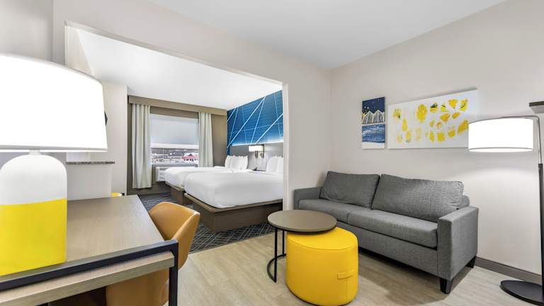 Die Zimmer sind mit einem Doppelbett und einem Sofabett ausgestattet. Babykissen und Zustellbetten sind ebenfalls erhältlich. Eine Standardeinrichtung umfasst einen Schreibtisch, einen Kühlschrank, eine Mikrowelle sowie eine Tee-/Kaffeemaschine. Zusätzlich stehen ein Bügelset, ein Telefon, ein Fernseher mit Satelliten-/Kabelempfang, ein Wecker und kostenfreies Wifi zur Verfügung. Bäder sind mit einer Dusche, einer Whirlwanne und Haartrockner ausgestattet und bieten Kosmetikartikel für besonderen Komfort. Buchbare rollstuhlgerechte Zimmer sowie Familien- und Nichtraucherzimmer stehen zur Verfügung.